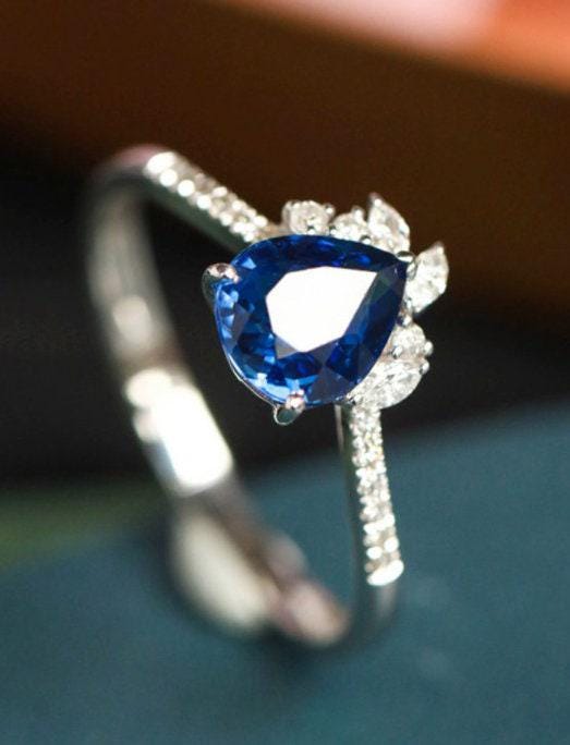 • Center Stone: Natural Blue Sapphire, Teardrop cut, Approx 1.20ct