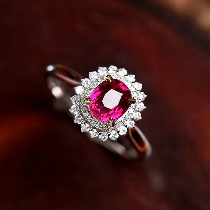 • Center Stone: Natural Ruby from Sri Lanka, Oval Cut, Approx 1.5ct