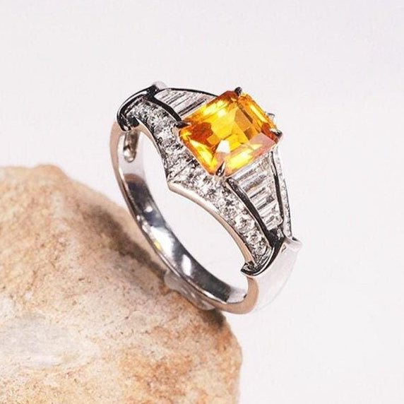 • Center Stone: Natura Yellow Sapphire, Radiant cut, Approx 1.55ct