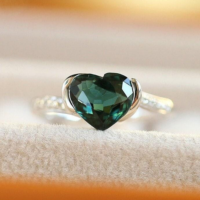 • Center Stone: Natura Blue Sapphire from Sri Lanka, Heart Shape, 1.7ct
