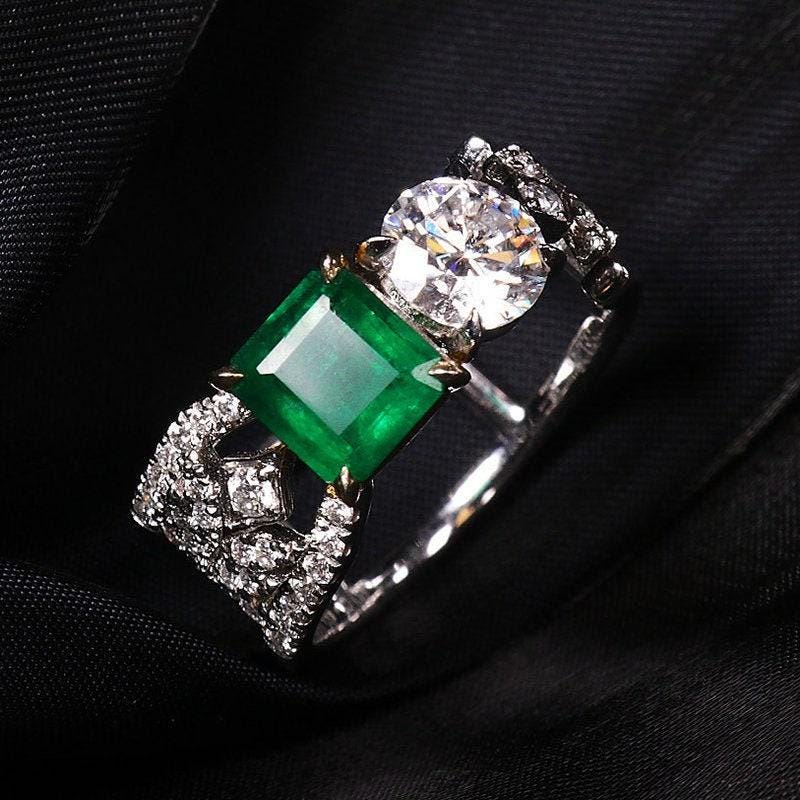 • Center Stone: Natural Zambia Emerald, Square cut, Approx 1.12ct