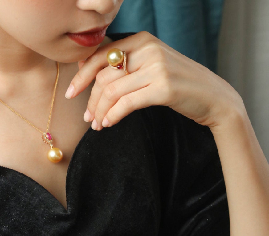 • Center Stone: 3A+ Natural Golden South Sea Pearl 11mm