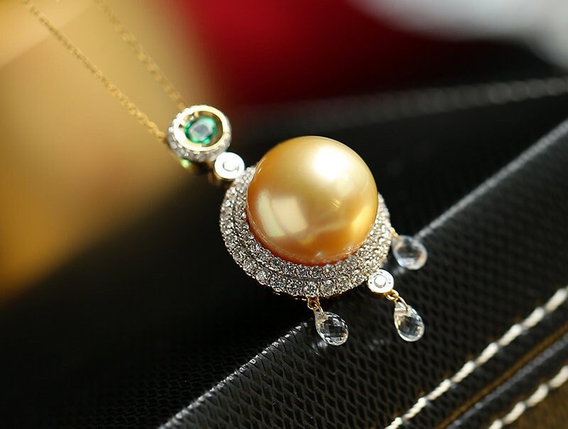 • Center Stone: Natural Golden South Sea Pearl 12mm