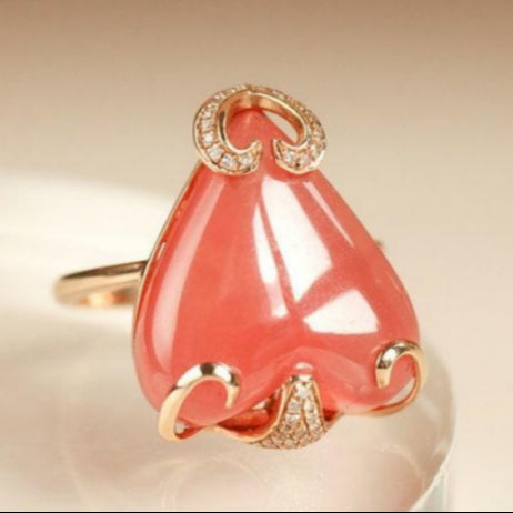 • Center Stone: 5A+ Natural Rhodochrosite from Argentina, 17x18mm, 18ct