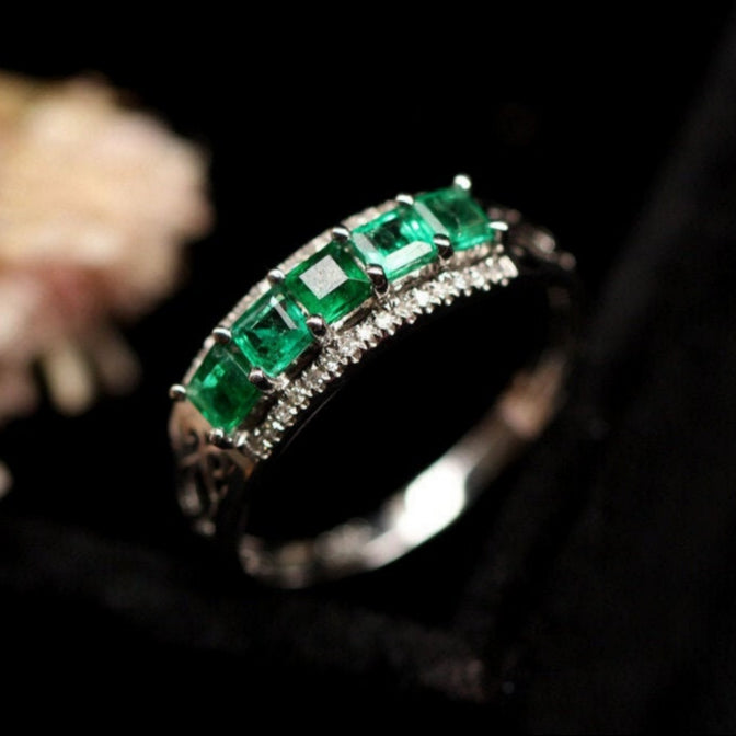 • Center Stone: Natura Emerald from Zambia, Approx 2.25ct (IF clarity, 5A color)