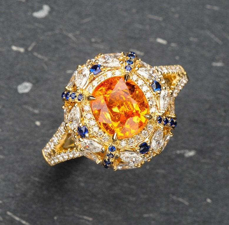 • Center Stone: Natural Spessartite Fanta Garnet, Oval Brilliant cut, Approx 2.29ct