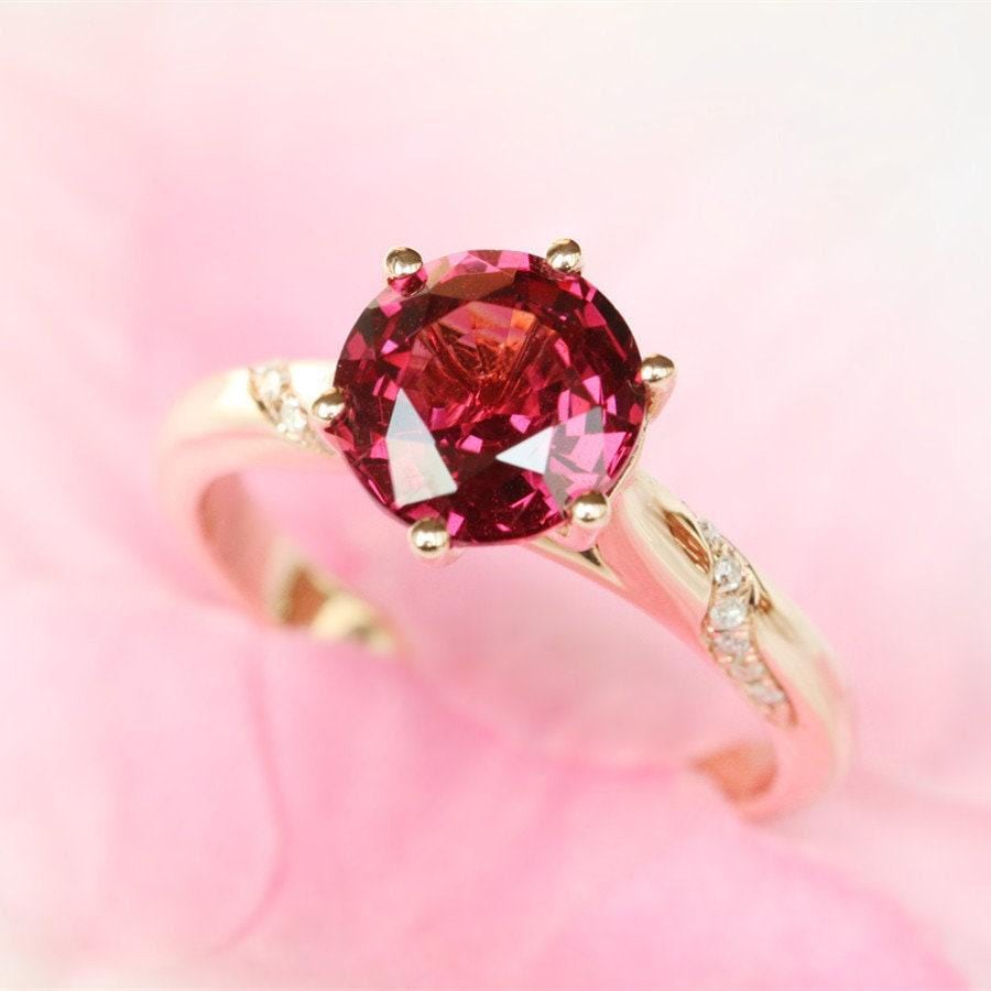 • Center Stone: Peach Red Natural Garnet, Round Cut, 6 x6 mm, VVS clarity