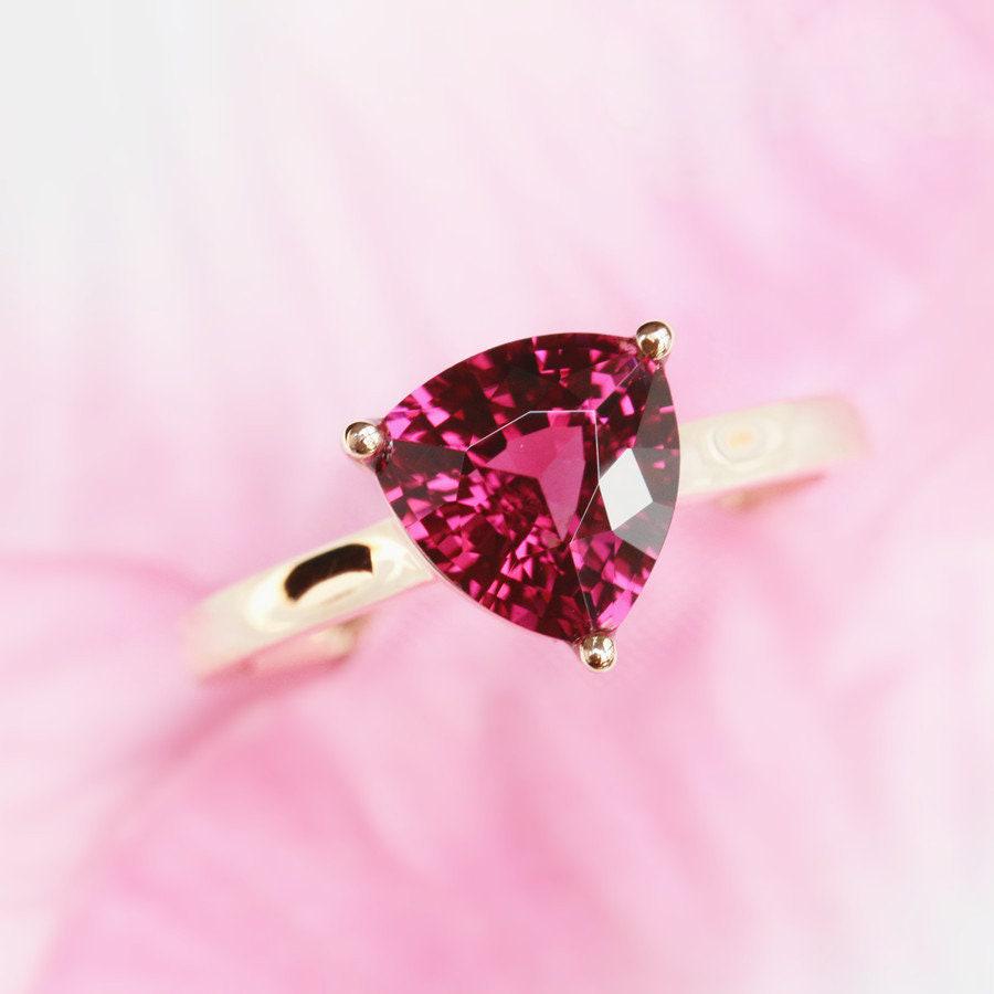 • Center Stone: Peach Red Natural Garnet, Trillion Cut, 5mm (Approx 1.5ct) or 10mm (approx 3.3ct), Optional