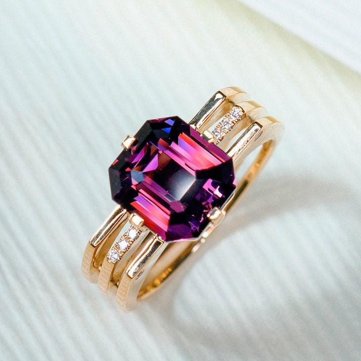 • Center Stone: Natura Purple Spinel, Emerald Cut, Approx 3.3ct