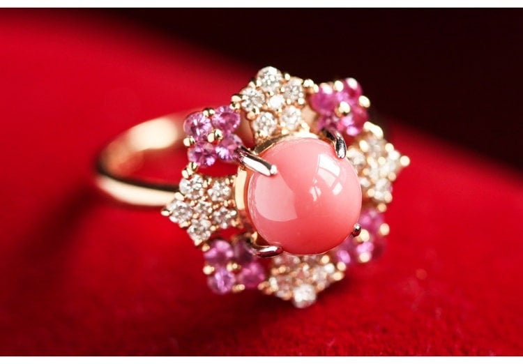 • Center Stone: Natural 7mm Pink Carol Round Shape, 2.8ct