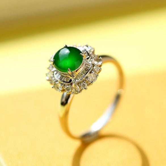 • Center Stone: 5A+ Natural Jade from Myanmar, Cabochon Cut, Round Shape