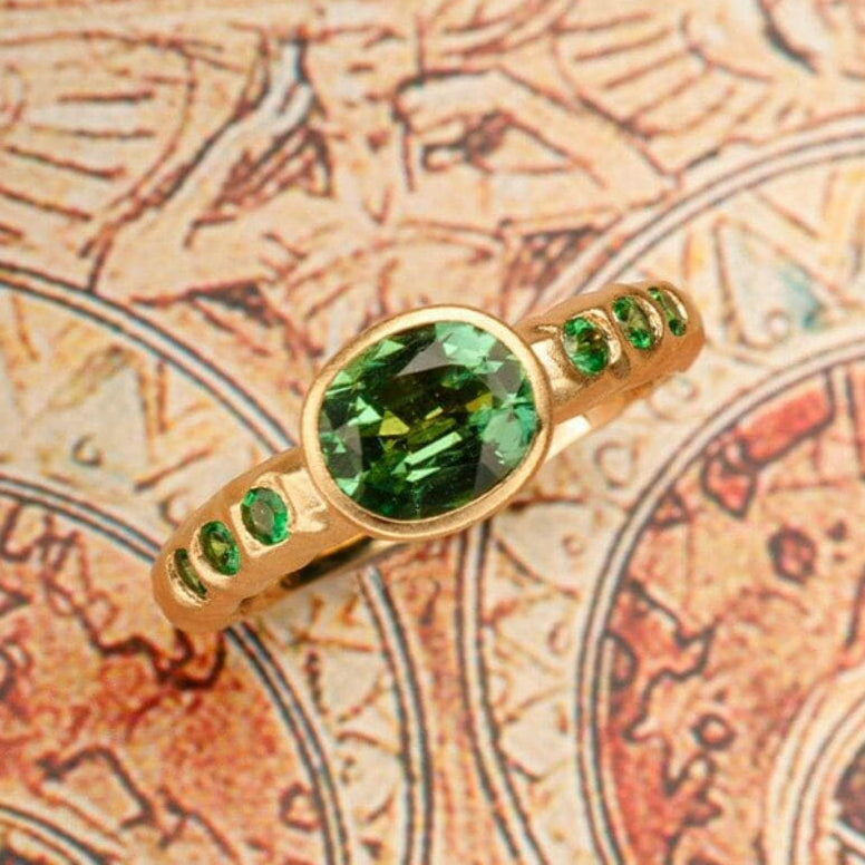 • Center Stone: Natura Tourmaline from Afghanistan, Oval cut, Approx 0.86ct