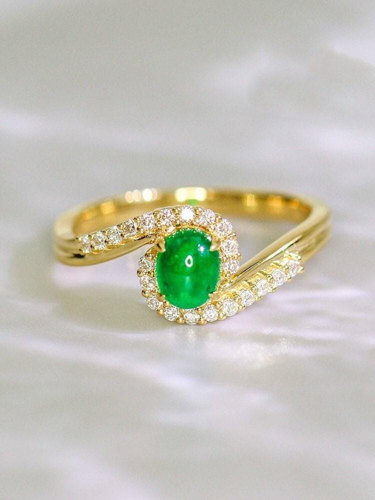 • Center Stone: Natura emerald from Zambia, Cabochon Cut, Approx 0.80ct