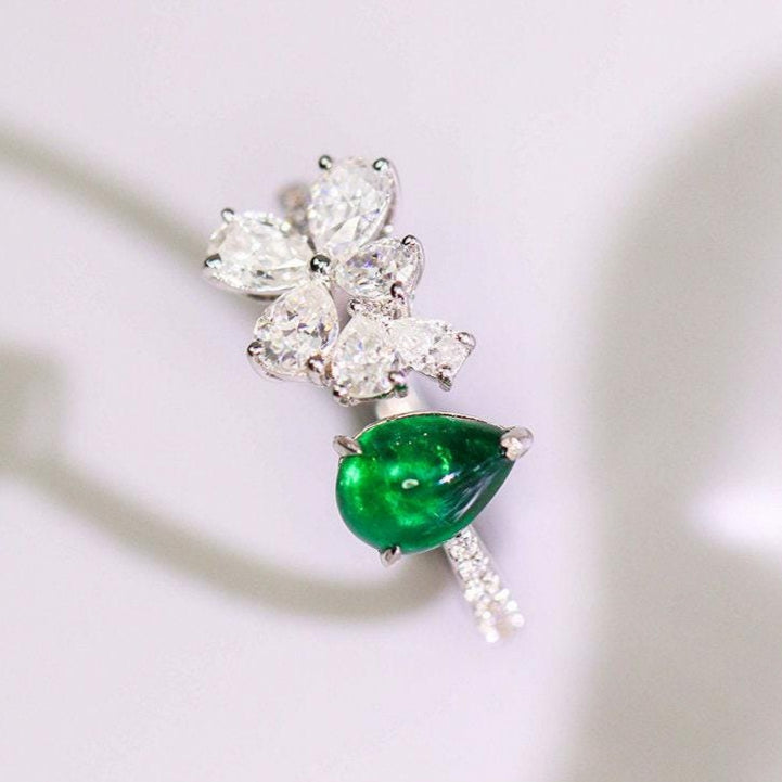 • Center Stone: Natura Emerald from Zambia, Cabochon Cut, Approx 0.73ct