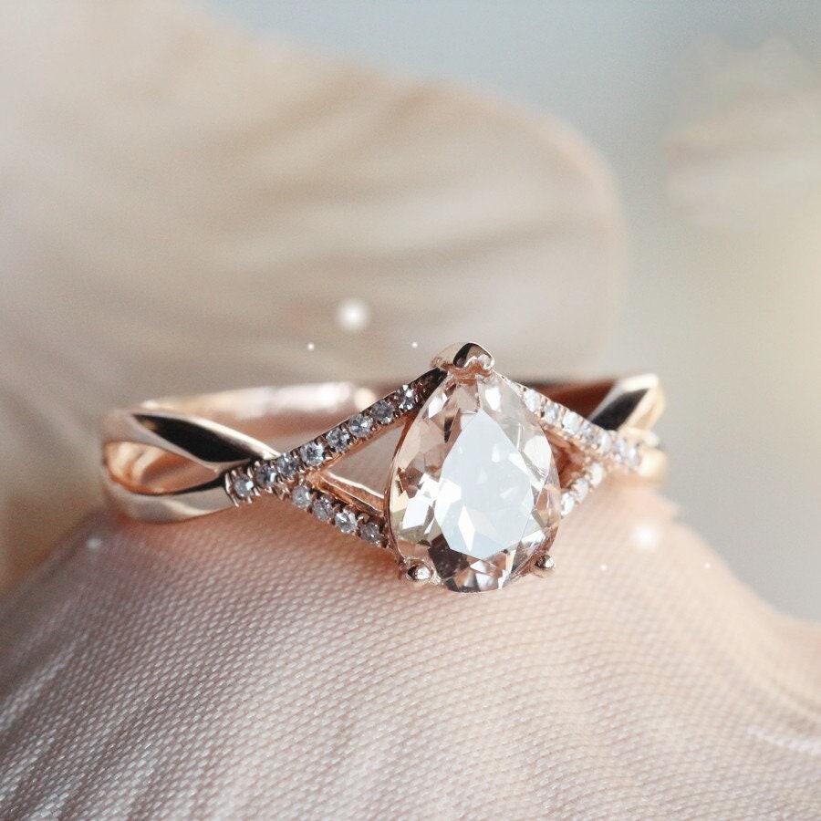 • Center Stone: Champagne Morganite, heart cut, Approx 8x6mm