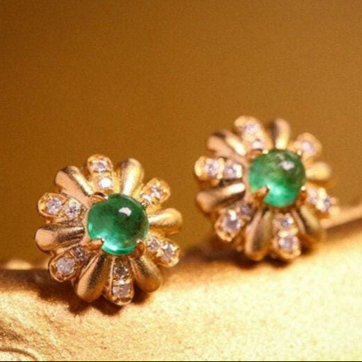 • Center Stone: Natura Emerald from Zambia, Cabochon Cut, 0.27ct 3x3mm