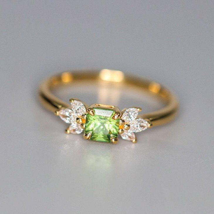 • Center Stone: Natural Peridot, Asscher Cut, 5mm, Approx 0.75ct
