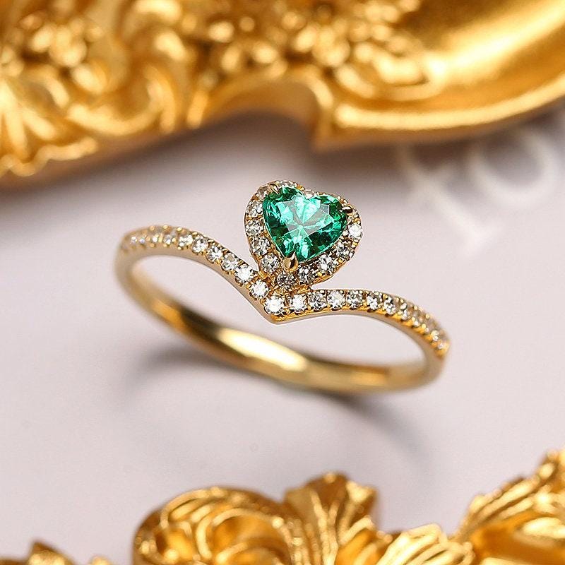 • Center Stone: Natural Emerald from Colombia, Heart Cut Approx 0.42ct (IF Color, 5A Color)