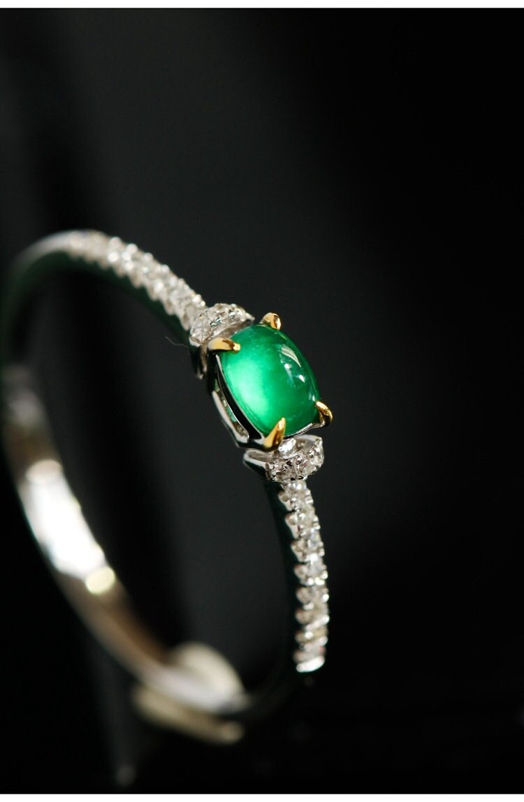• Center Stone: Natural Vivi Green Emerald, 4x3mm, 0.23ct