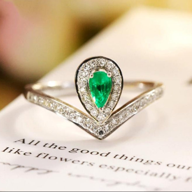 • Center Stone: Natural Emerald from Colombia, Teardrop Cut Approx 0.28ct (IF Color, 5A Color)