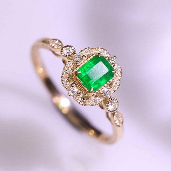 • Center Stone: Natura emerald from Zambia, Emerald Cut Approx 0.38ct