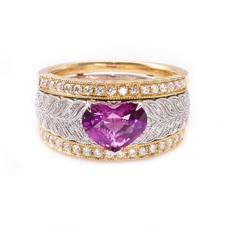 • Center Stone: Natural Pink Purple Spinel, Heart Cut, Approx 1.45ct, 7.5mm*7.6mm