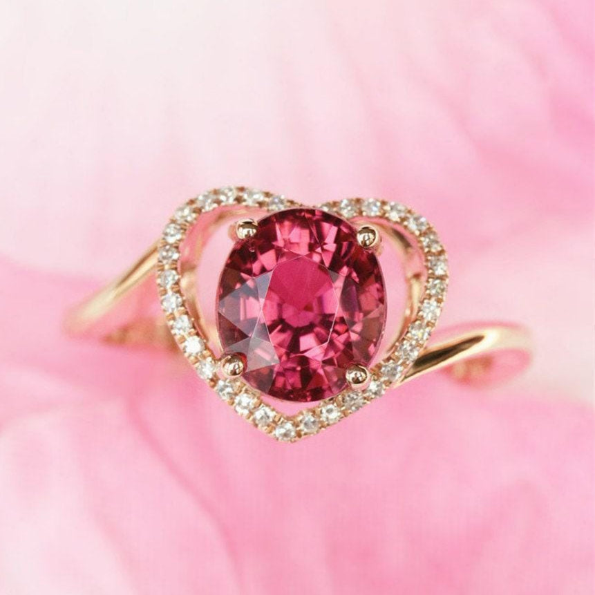 • Center Stone: Peach Red Natural Garnet, oval cut, Approx 1ct, 7.5mm (VVS clarity)