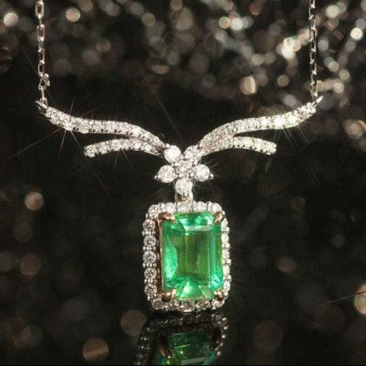 • Center Stone: Natura emerald from Zambia, Emerald Cut, Approx. 1.2ct, 7x5mm