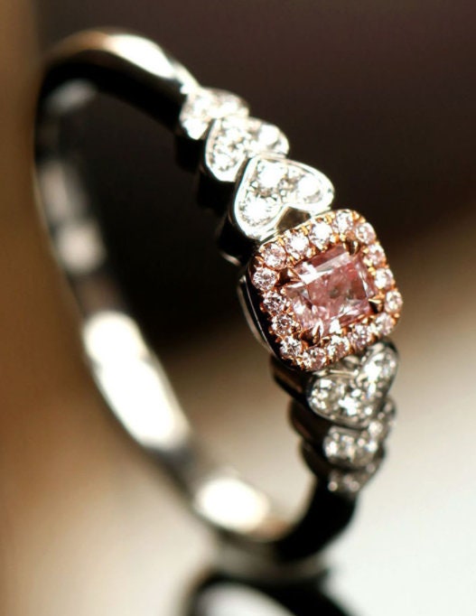 • Center Stone: Natura Pink Diamond, Cushion Cut, Approx 0.148ct (SI clarity)