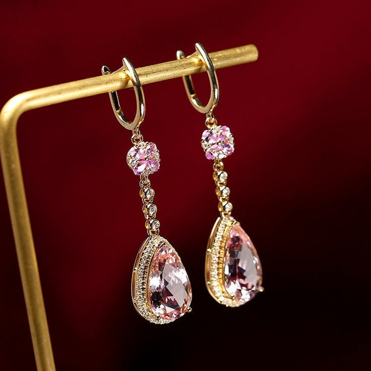 • Center Stone: Natural Pink Morganite, Teardrop cut, Approx 7x5mm, 1.46ct total