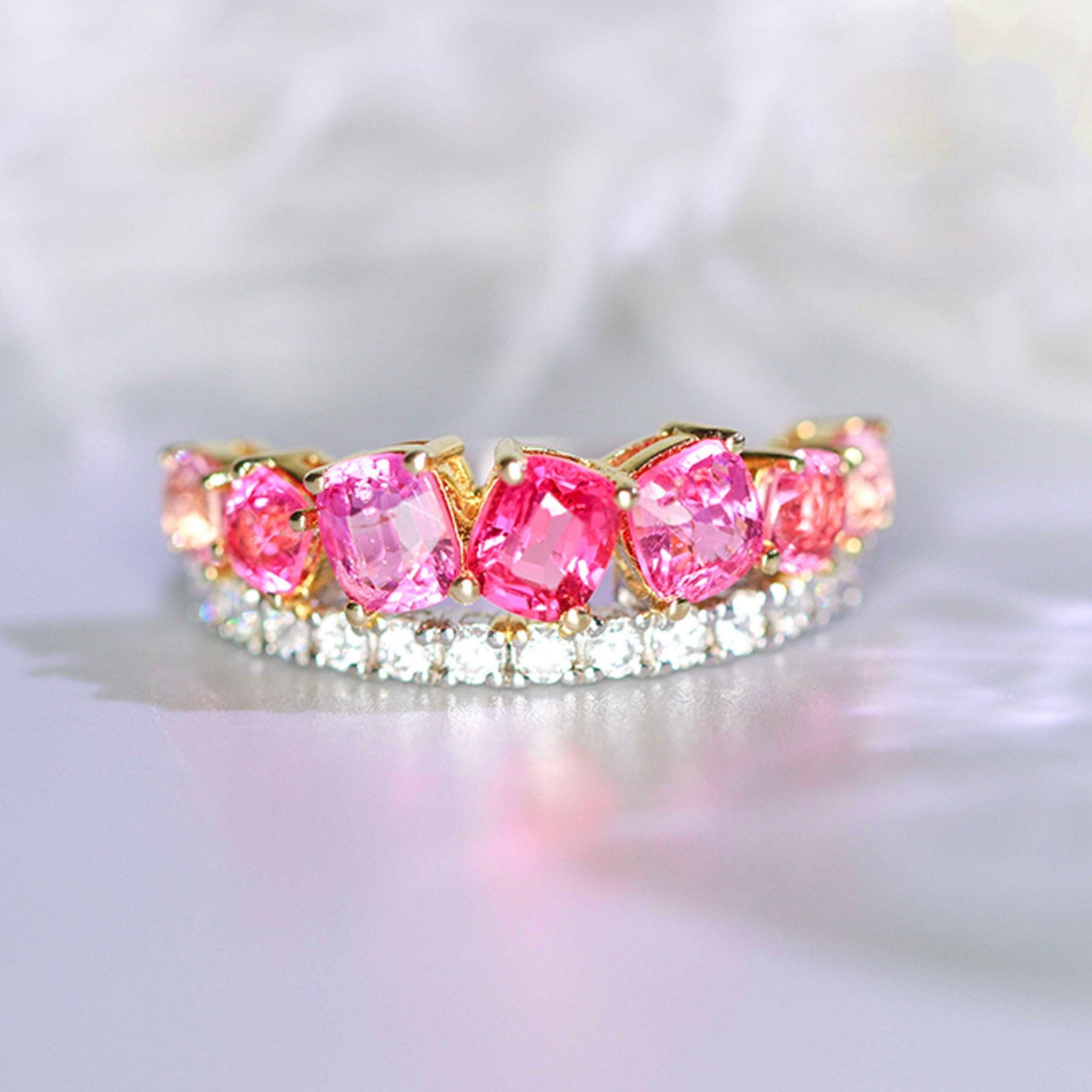 • Center Stone: Natural Pink Peach Spinel, Cushion Cut, Approx 0.65ct