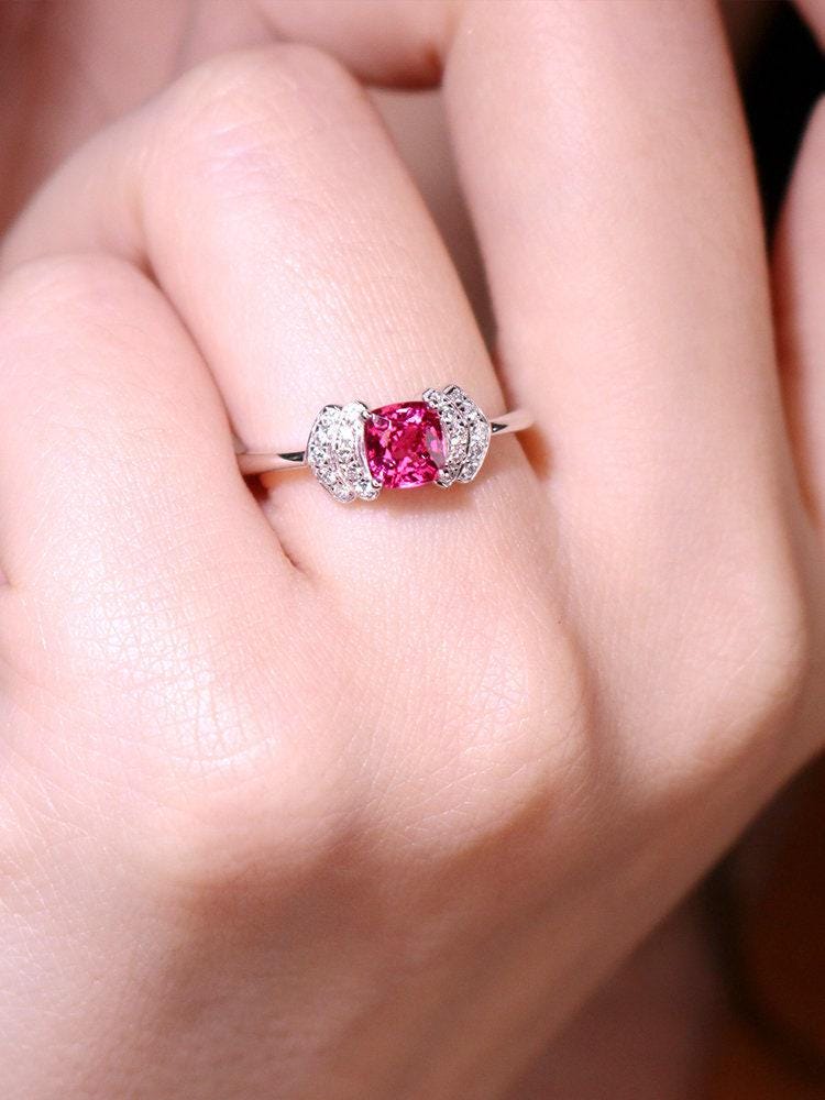 • Center Stone: Natural Pink Peach Spinel, cushion Cut, Approx 0.65ct, 5.3 x 5 x 3mm