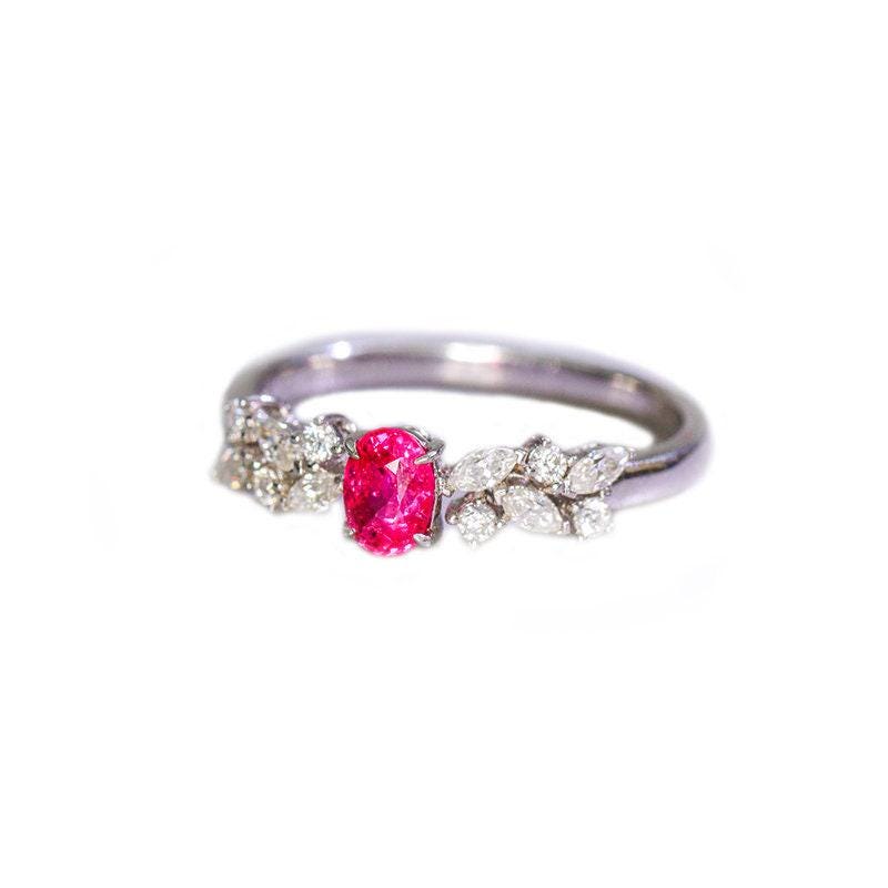 • Center Stone: Natural Pink Red Spinel, cushion Cut, Approx 0.7ct