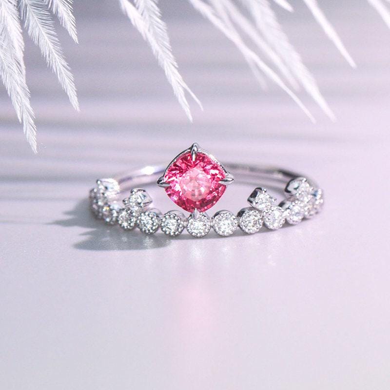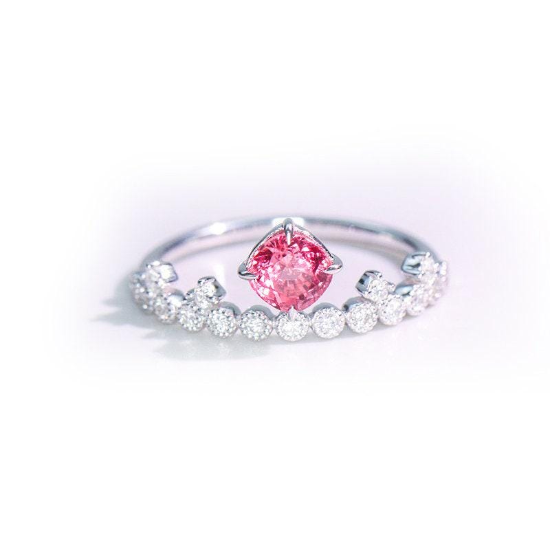 • Center Stone: Natural Pink Red Spinel, cushion Cut, Approx 0.6ct, 5.3 x 5 x 3mm