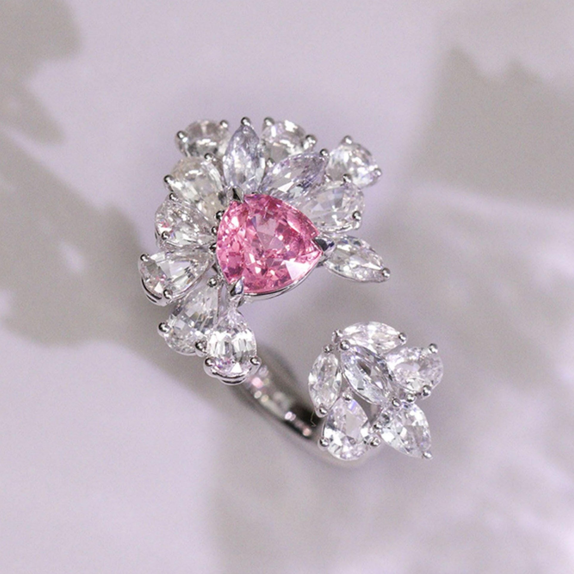 • Center Stone: Natural Pink Spinel, Trilliant Cut, Approx 1.5ct