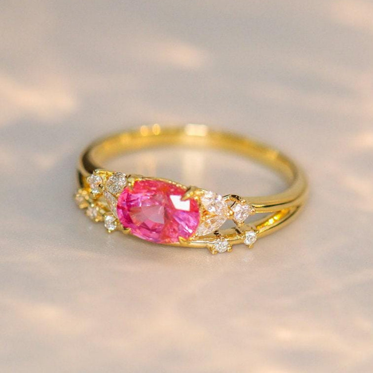 • Center Stone: Natural Pink Sapphire from Sri Landka, Oval Cut, 0.82ct