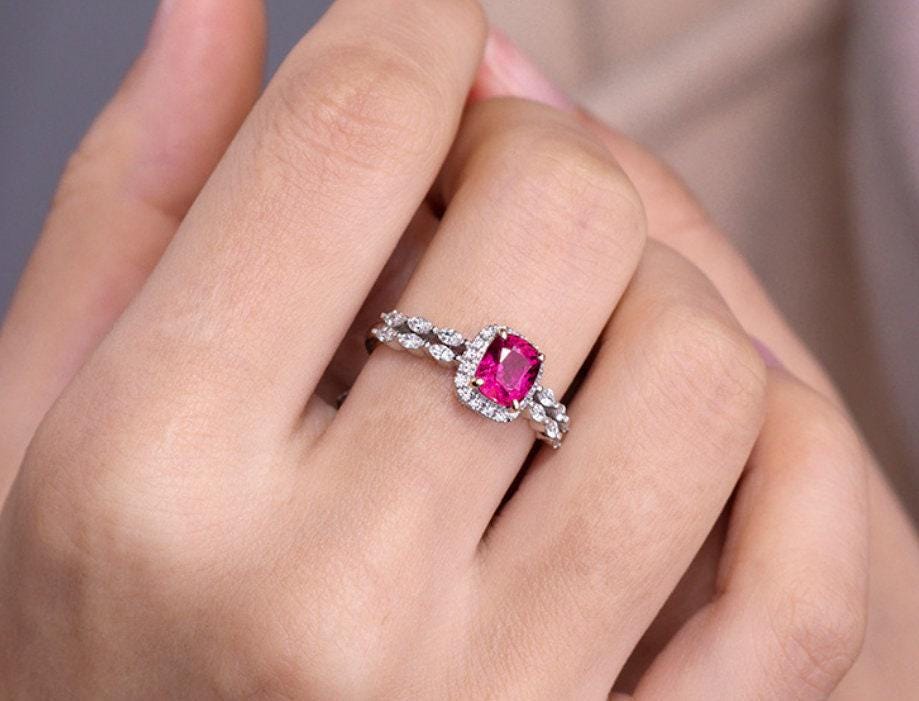 • Center Stone: Natural Pinkish Red Spinel, Cushion Cut, Approx 1.12ct