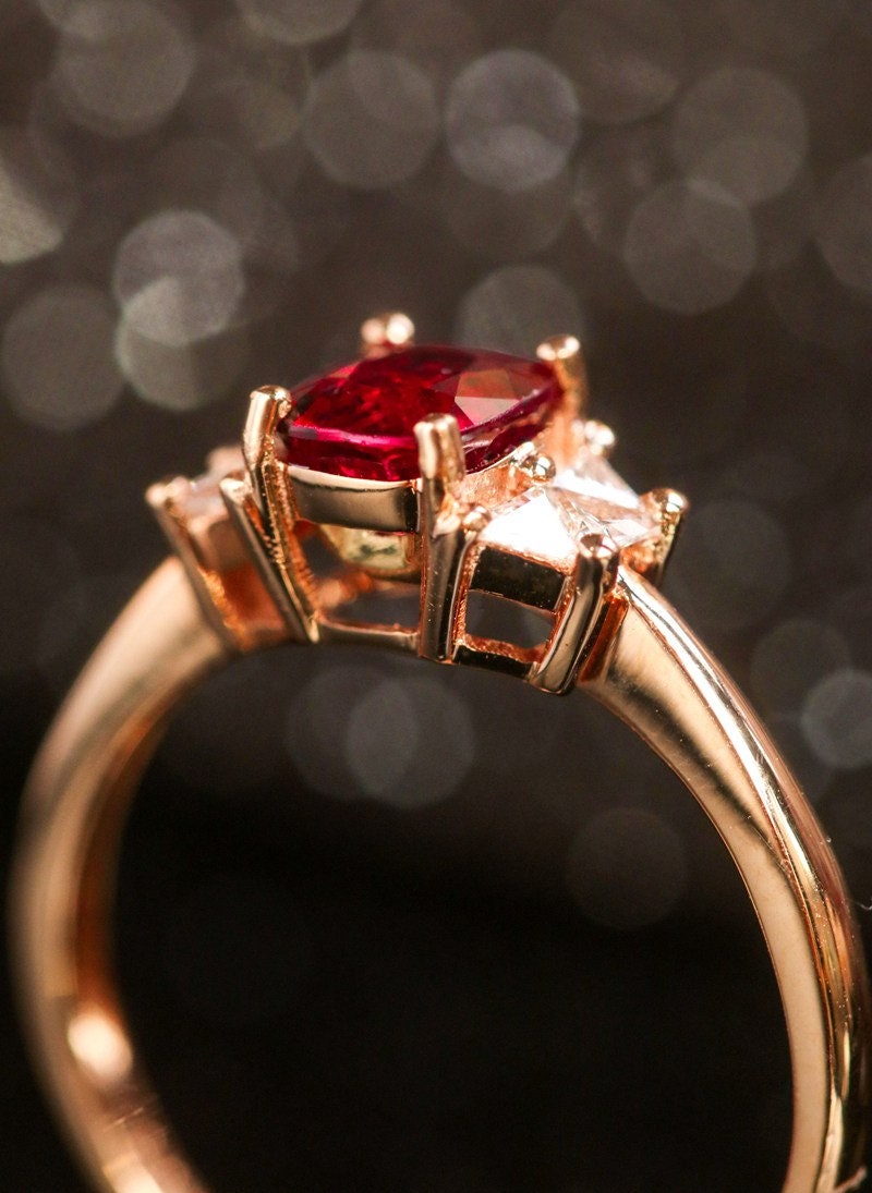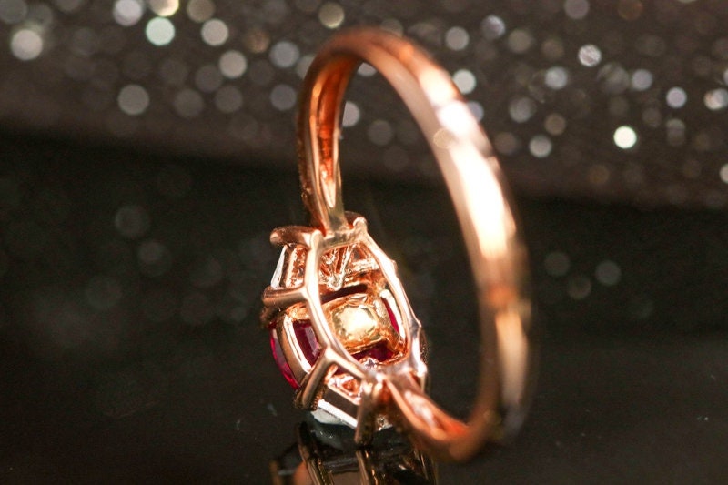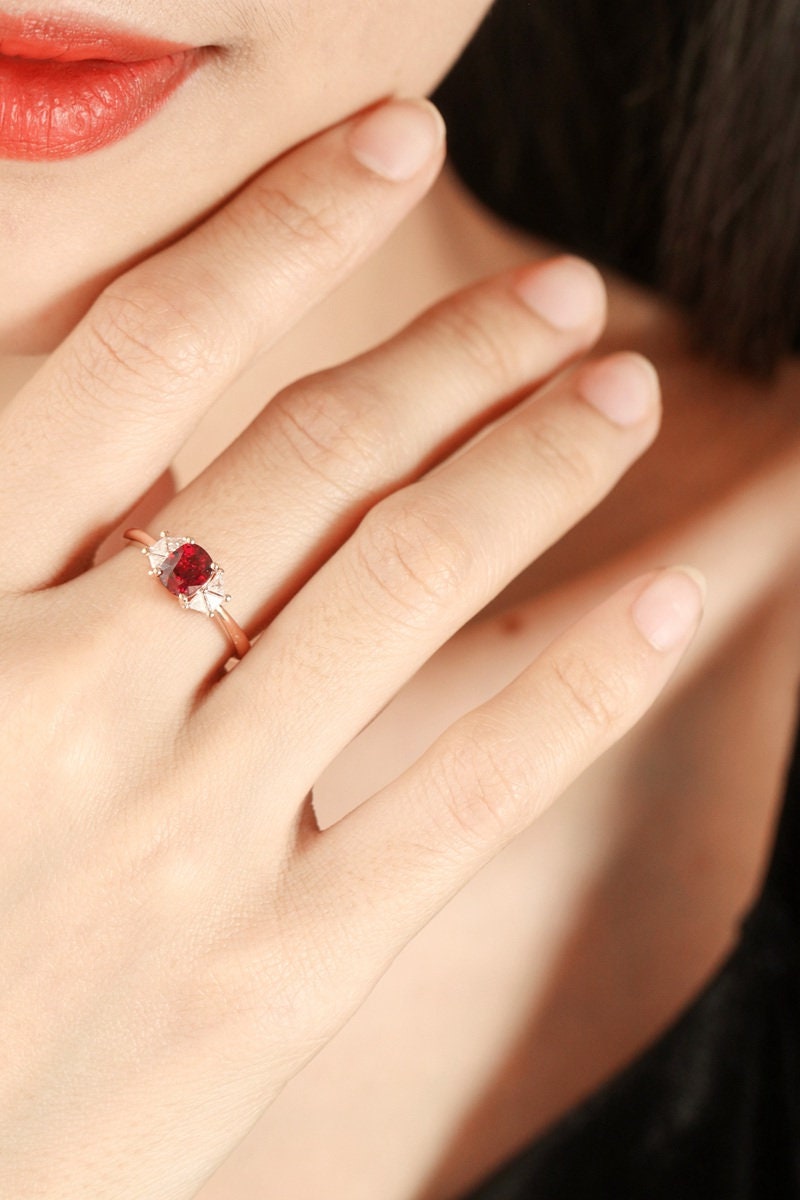 • Center Stone: Natural Pink Red Spinel, Cushion Cut, Approx 0.83ct, 6.7x5.1mm