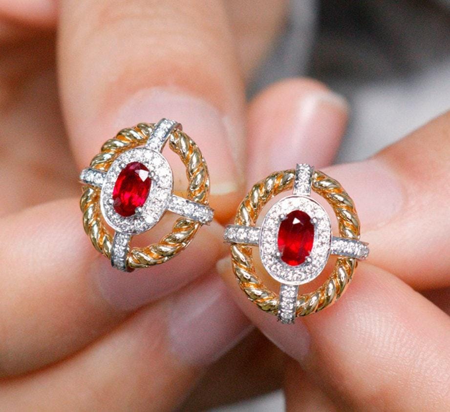 • Center Stone: Natural Red Spinel from Burma, Oval Cut, Approx 0.485 carat in total