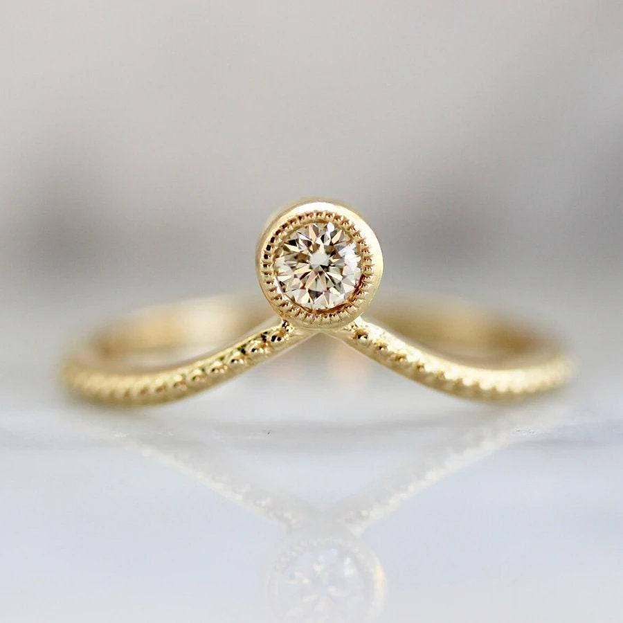 Keep your stack looking fresh with this eternal sunshine colored diamond stacker with delicate milgrain detail.