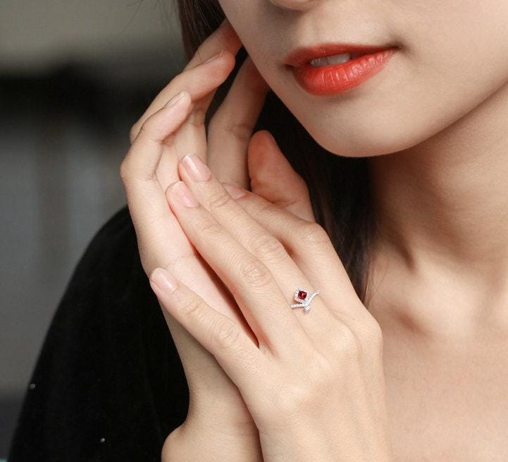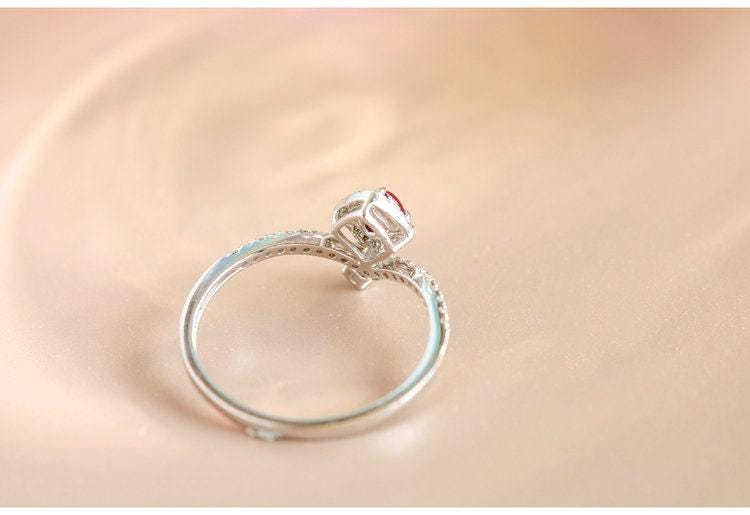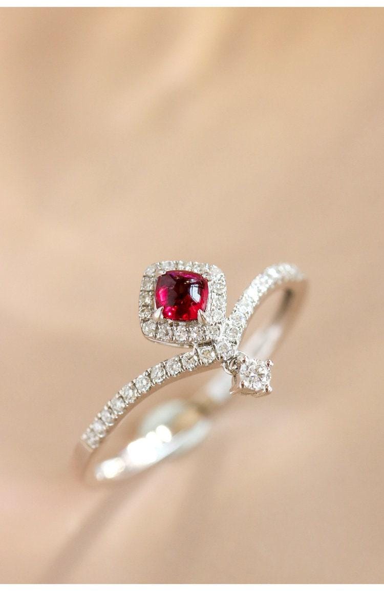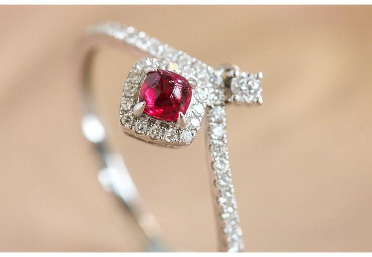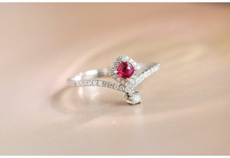 • Center Stone: Natural Red Pink Spinel, Square Cut, Approx 0.22ct, 3xmm