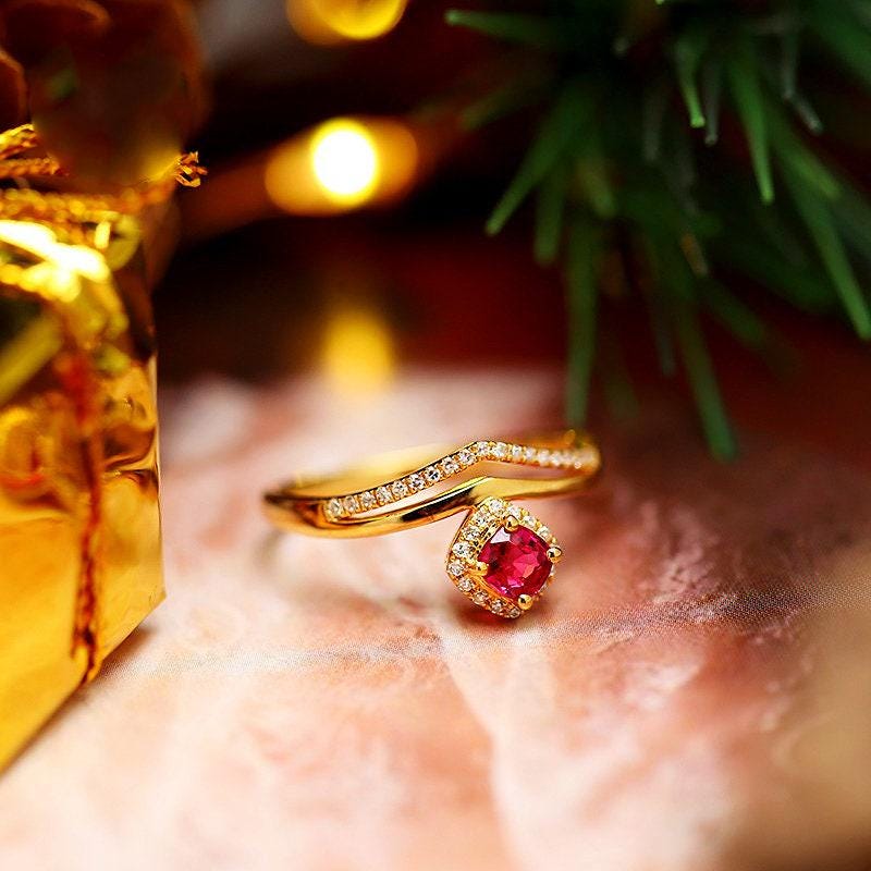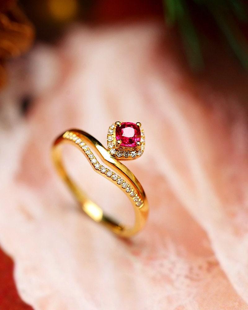 • Center Stone: Natural Spinel, Cushion Cut, Approx 0.45ct, 4x4mm