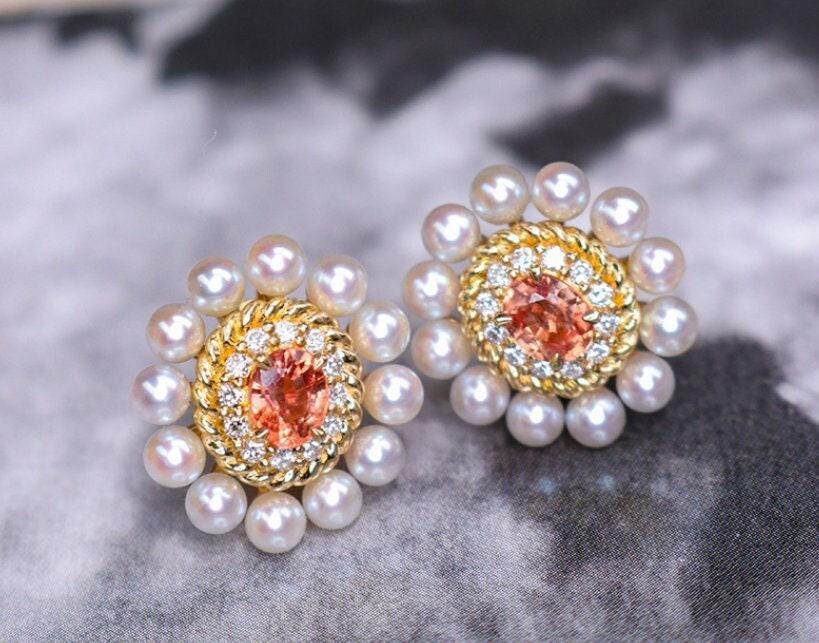 • Center Stone: Natural Padparadscha Sapphire, Oval cut, Approx .80ct in total